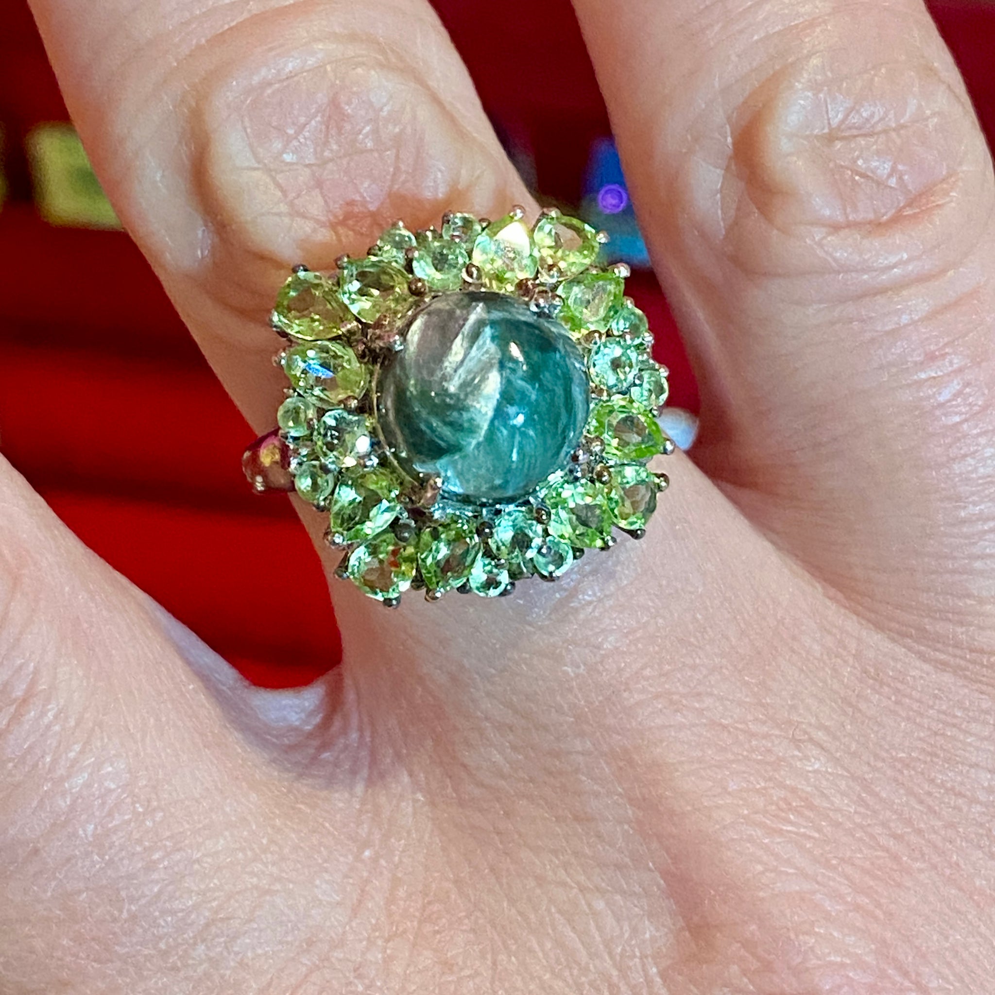 • Load image into Gallery viewer, SS Gray Moonstone Peridot Ring