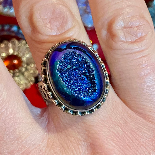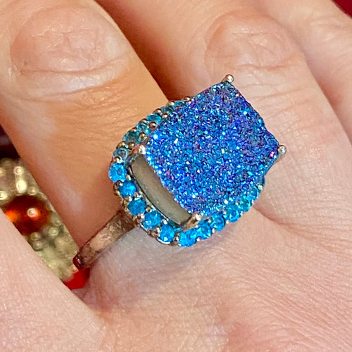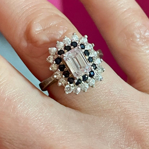 SS Art Deco Style Spinel Lab Sapphire Ring